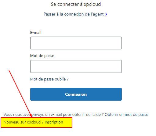2 - Cliquez dans la nouvelle fenêtre de connexion sur : "nouveau sur XPCLOUD? Inscription"